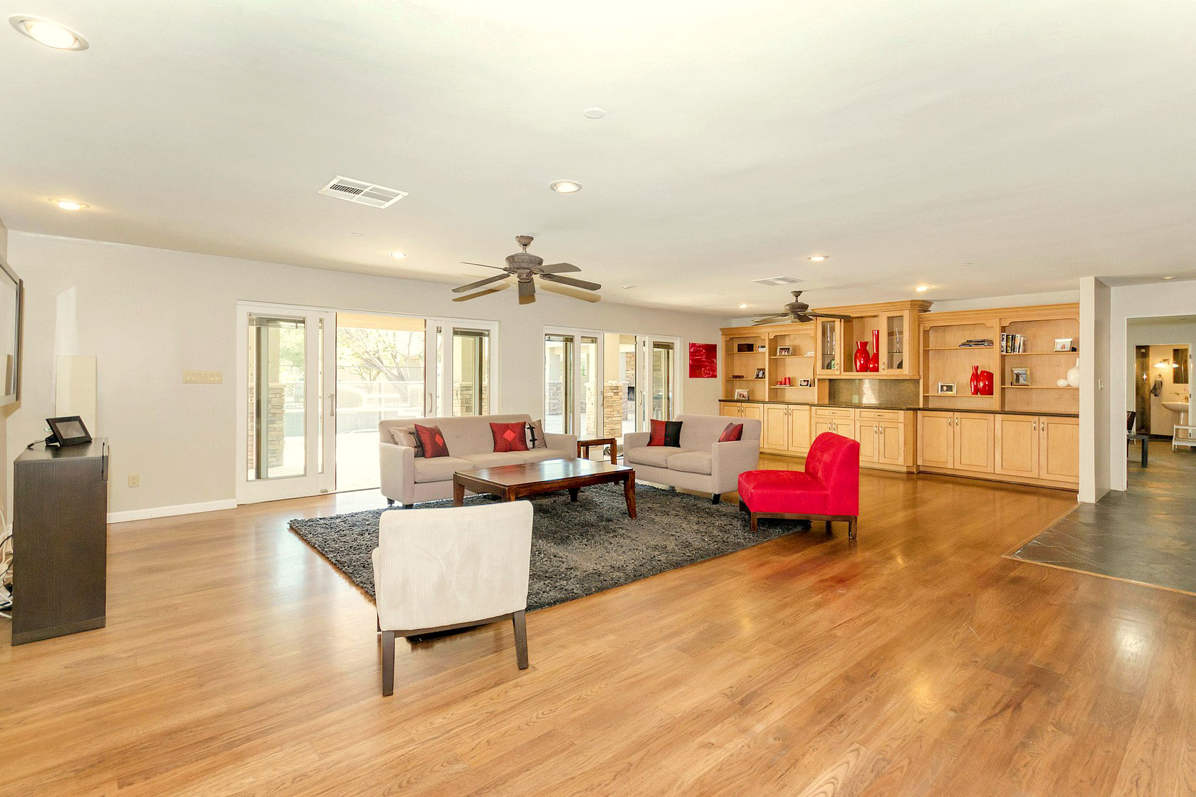 Fantastic home in fantastic location, 4,303 SF, 4 beds, 4 baths, includes fabulous great room with gorgeous hardwood floors, beautiful custom cabinetry, wall of glass facing covered patio, pool, with new tile & pebble-tec finish, & outside dining area with built-in BBQ, sink and fireplace. Kitchen boasts 2 wall ovens, granite countertops and stainless steel appliances. Cozy master retreat, large flex-room with slate flooring, office with patio and huge laundry room. Guest house, with travertine floors, family room, bedroom and eat-in kitchen with custom cabinets, granite countertops and stainless steel appliances. Gated entrance opens onto pavered circular driveway & 35,411 SF lot. Minutes from Old Town Scottsdale and tons of shopping, restaurants and entertainment. Three car garage without doors. This home is a real gem!
