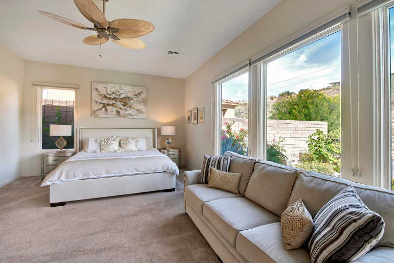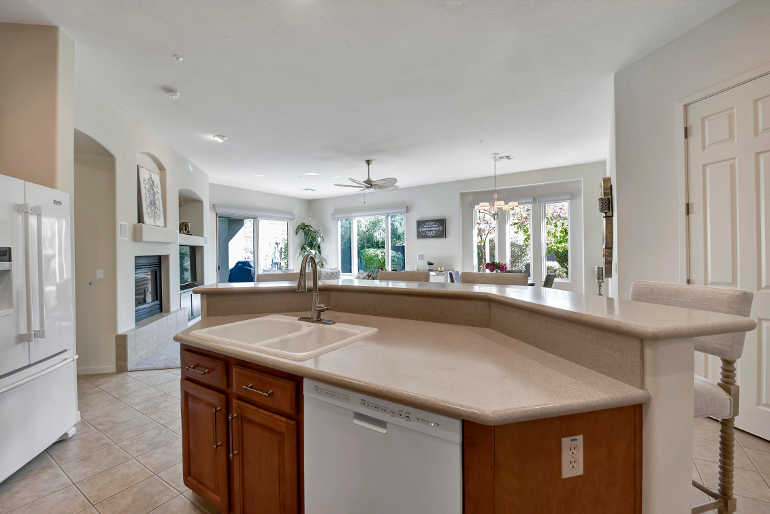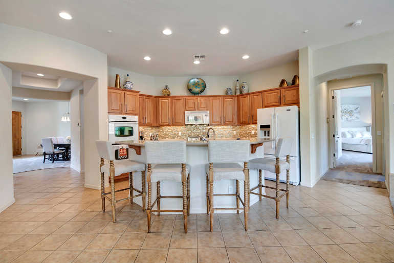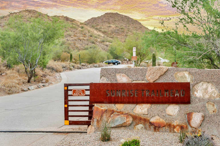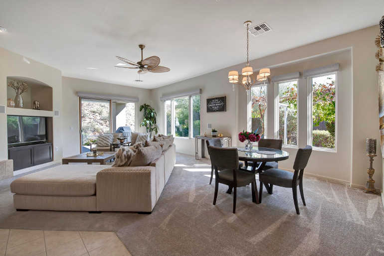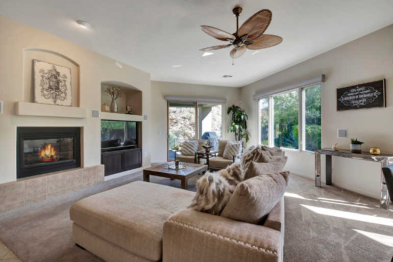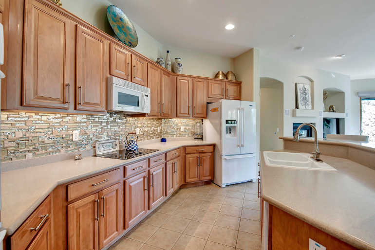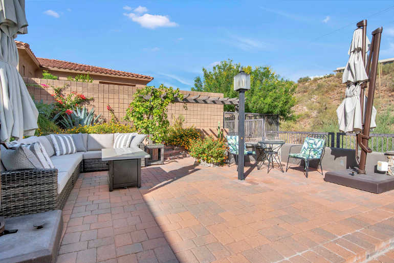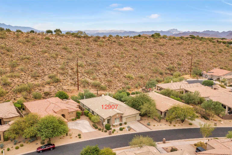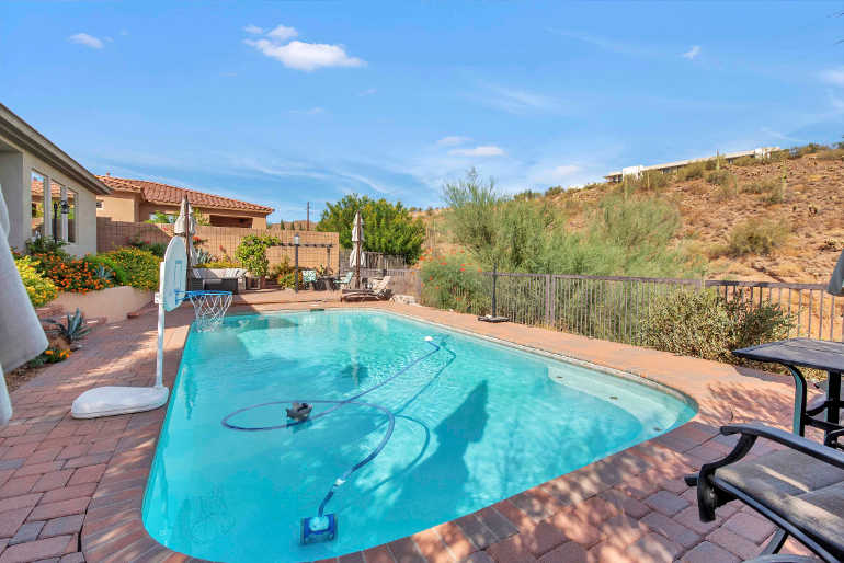 This residence is rich with upgrades (under Documents tab) and features, including Pella double paned windows, fantastic cooks kitchen open to family room, center island with breakfast bar, Corian countertops, kohler fixtures, 2 wall ovens, master bath with his/her vanities and custom closet, heated pool in private entertainer’s backyard with stunning mountain views, covered patio, all pavered decking, desert landscaping, front and back, for minimal maintenance and down the street from the Sunrise Trailhead.